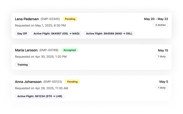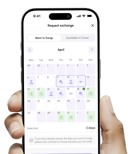 Roster, swap management, availability checks, and document access—all in one place